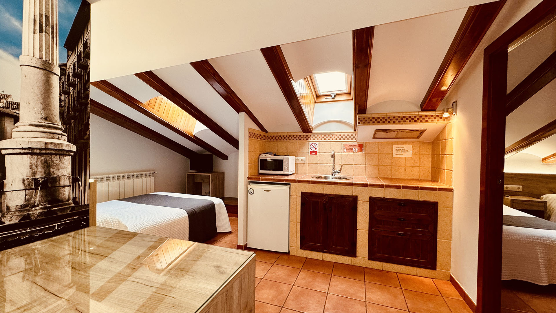 Dos apartamentos dobles abuhardillados con mucho encanto, con temática basada en nuestra emblemática fuente del Torico y La Torre de la Catedral.